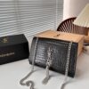 Presented in black, it features the label’s signature YSL logo to the front as well as a magnetic fastening, hanging tassel, a silver-tone chain shoulder strap and a single internal slip pocket and logo plaque. Invest in your own piece of Saint Laurent style by pairing yours over slim fit winter coats or patterned long length slip dresses.