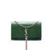 Presented in green, it features the label’s signature YSL logo to the front as well as a magnetic fastening, hanging tassel, a silver-tone chain shoulder strap and a single internal slip pocket and logo plaque. Invest in your own piece of Saint Laurent style by pairing yours over slim fit winter coats or patterned long length slip dresses.
