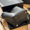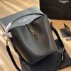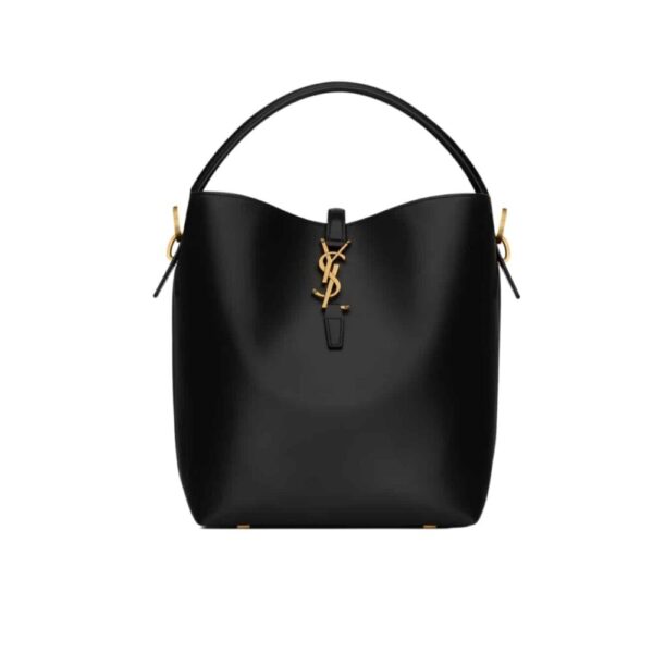 It features the signature YSL monogram at the front, a structured bucket silhouette, and an adjustable strap for versatile wear. The minimalist design with a luxe finish makes it perfect for both day and evening looks.