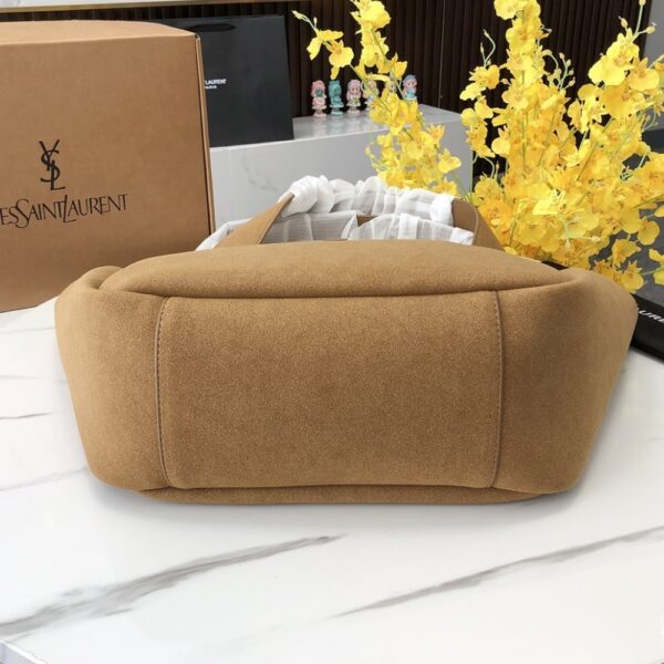 The Saint Laurent Le 5 À 7 Bea in Golden Leaf Suede offers a luxurious blend of bold color and elegant design. Crafted in high-quality suede, this oversized bag makes a statement with its spacious silhouette and iconic style. Perfect for day-to-night versatility, it adds a touch of vintage allure to any outfit.