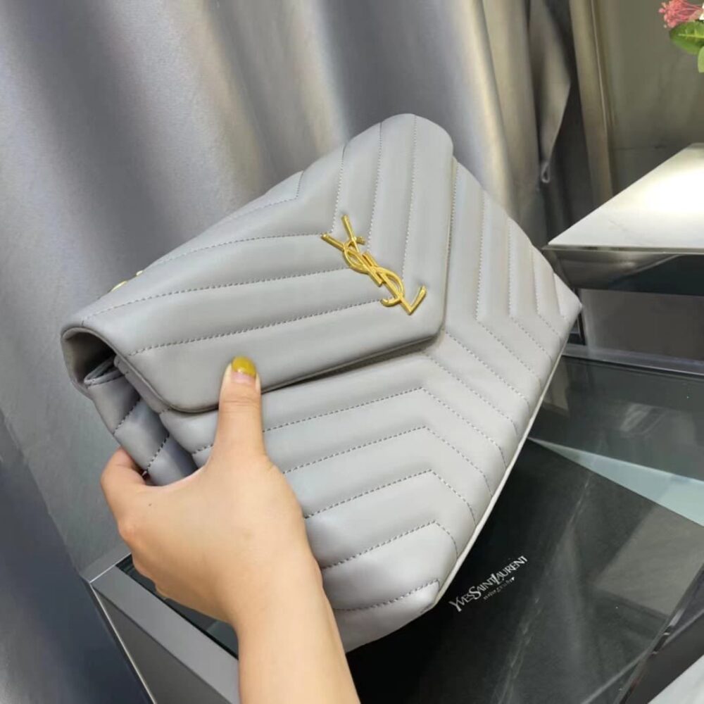 Saint Laurent Loulou Chain Bag In Matelasse Y Gray