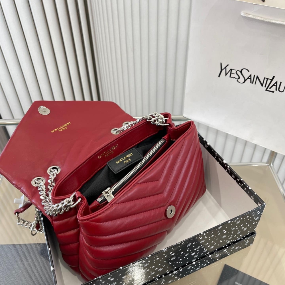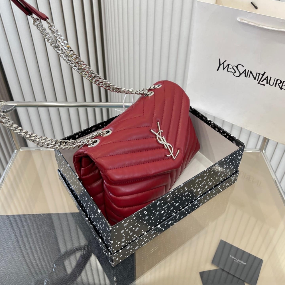 The Saint Laurent LouLou Shoulder Bag in red quilted leather is a bold statement piece with a refined edge. Its spacious interior makes it as practical as it is stylish, perfect for both day and evening looks.