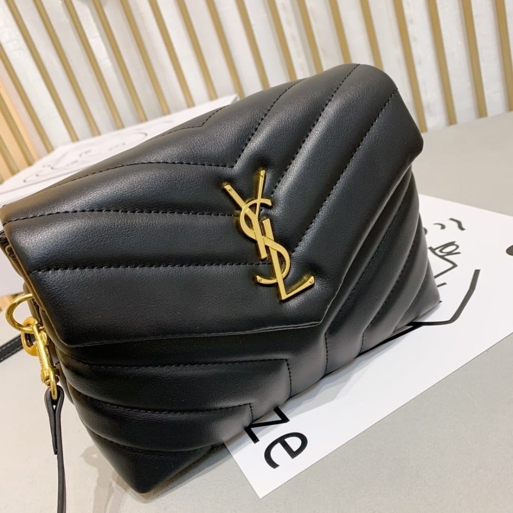 Saint Laurent Loulou Toy Strap Bag In Quilted Y Black With Bronze Toned Metal Hardware