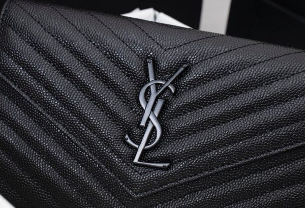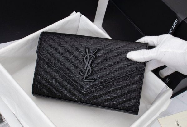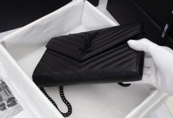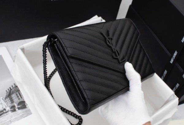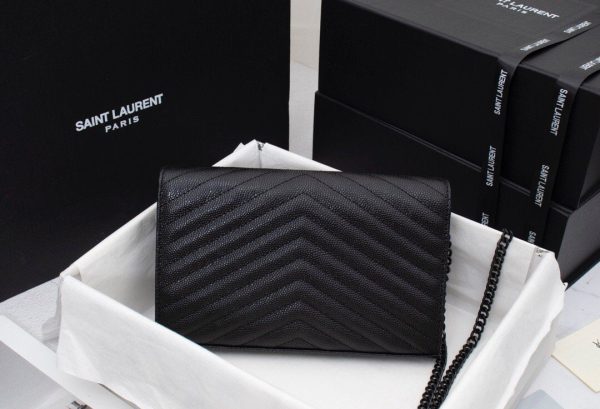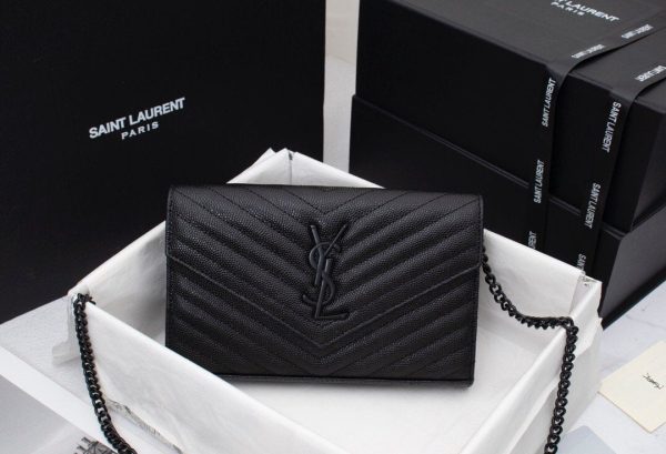 Home / Matelassé / Saint Laurent Matelasse Grain de Poudre Matte Black Monogram Chain Wallet